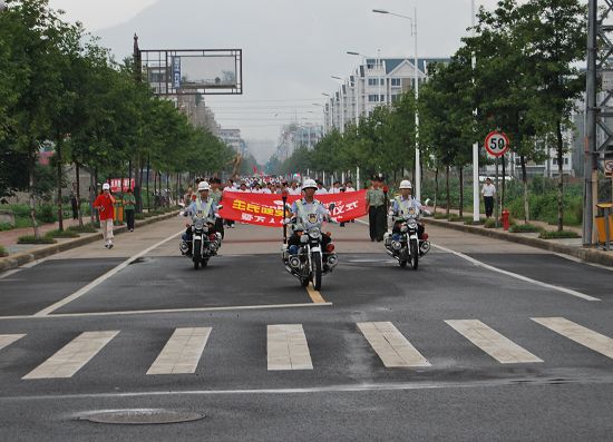 健步走隊伍在麗水市委書記陳榮高的帶領(lǐng)下,從濱水公園出發(fā),沿著花園路-囿山路-宇雷路-江濱路返回濱水公園,盡管活動開始后不久,天空就下起了小雨,但是這絲毫沒能阻擋大家的熱情,隊伍冒雨堅持走完了全程。到達(dá)終點(diǎn)后,大家在印有麗水市“全民健身日”暨萬人健步走活動的橫幅上簽字。