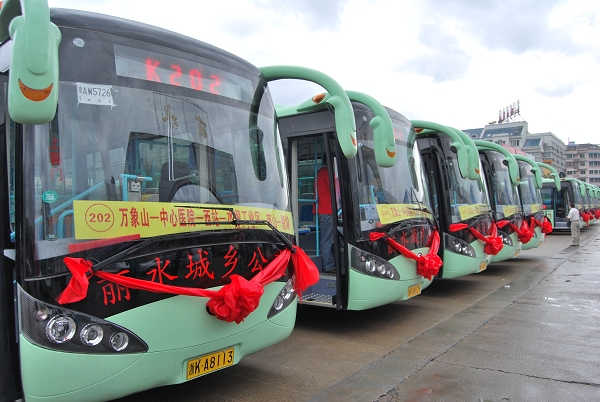 萬象山至碧湖線路起止站分別為萬象山、碧湖,途經(jīng)市中心醫(yī)院、三巖寺、汽車西站、九里村、高速路口等26個站點(diǎn),總里程約21公里;火車站至大港頭路線起止站分別為火車站、大港頭,途經(jīng)汽車東站、九里村、泰隆銀行、星火商城、三巖寺等40個站點(diǎn),總里程約38公里。這兩條線路共投入14輛空調(diào)大巴車,分別每隔12分種、25分鐘發(fā)車,全程票價均為3元,公交運(yùn)營時間夏季為5∶30-18:30,冬季為6:30-17:30。 兩條線路的開通將進(jìn)一步滿足人民群眾的出行需求,加快城鄉(xiāng)道路運(yùn)輸結(jié)構(gòu)的調(diào)整,有效整合和充分利用城鄉(xiāng)客運(yùn)資源,加快農(nóng)村城鎮(zhèn)化進(jìn)程,提高城鄉(xiāng)客運(yùn)的整體發(fā)展,促進(jìn)城鄉(xiāng)經(jīng)濟(jì)全面協(xié)調(diào)發(fā)展。