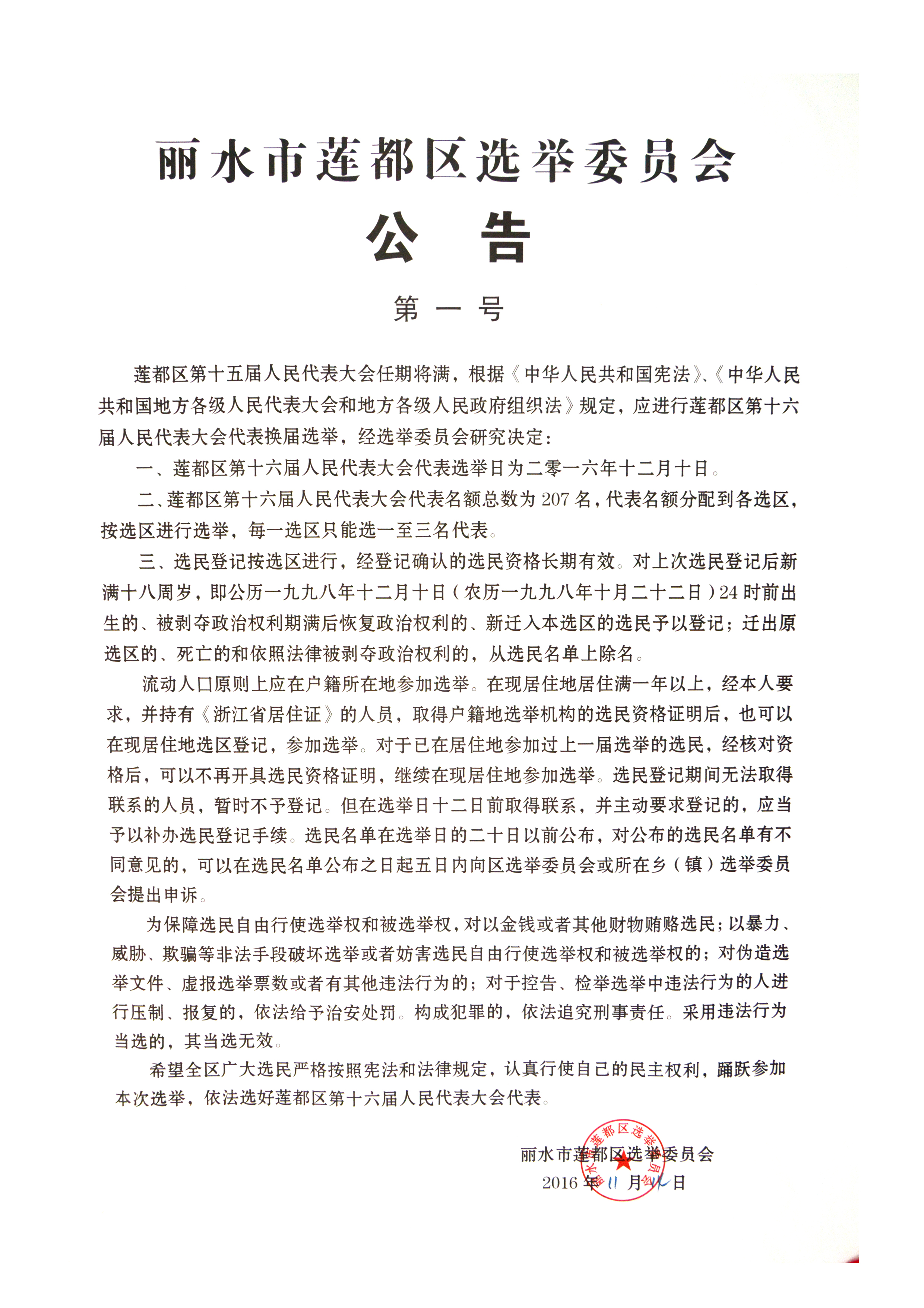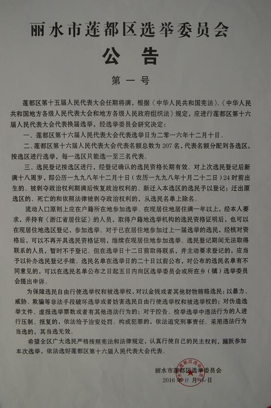 麗水市蓮都區(qū)選舉委員會(huì)公告(第四號(hào))