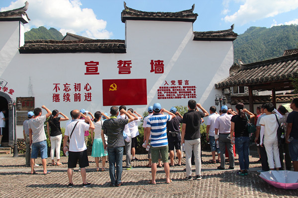 在有著“浙江井岡山”之稱的住龍鎮(zhèn),大家頂著火紅的驕陽重走住溪村紅軍街、參加紅軍學(xué)校的學(xué)習(xí)、參觀了紅色文化廣場和浙江最早建立的一個縣級蘇維埃政府,回顧了粟裕、劉英率領(lǐng)的中國工農(nóng)紅軍挺進師開創(chuàng)浙西南革命根據(jù)地的紅色歷史。參加活動的黨員還在宣誓墻前莊嚴(yán)地舉手宣誓,再一次重溫入黨誓詞,接受了一次黨性洗禮。