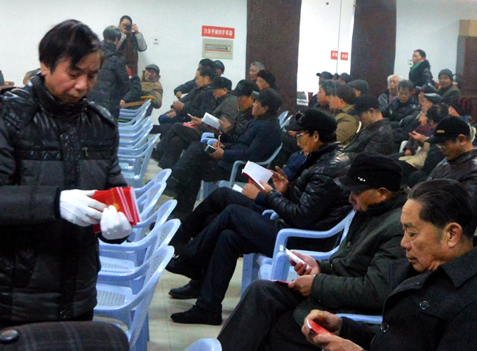 宣貫會前,工作人員還向參會的黨員同志發(fā)放了新版《黨章》,老同志們迫不及待地認真翻閱了新《黨章》。