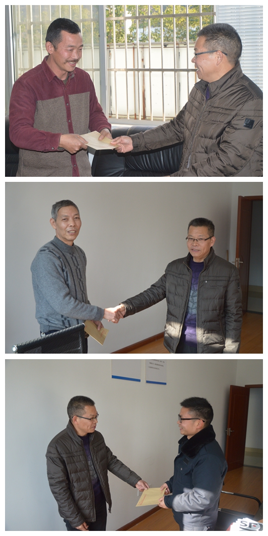 從上到下依次為廖委員慰問汽校的葉連武、檢測站的李華南、檢測站的金軍輝等三位同志