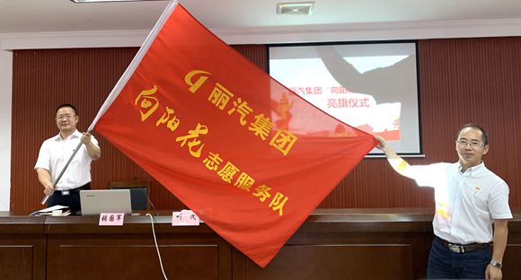 專題黨課后,還舉行了麗汽集團(tuán)“向陽花”志愿服務(wù)隊(duì)亮旗儀式。經(jīng)過前期征名和討論,集團(tuán)公司黨、政、工、團(tuán)四條線的志愿服務(wù)隊(duì)合并定名為“向陽花”志愿服務(wù)隊(duì),此舉將規(guī)范統(tǒng)一麗汽集團(tuán)的志愿服務(wù)載體,使廣大黨團(tuán)員和員工投身志愿服務(wù)的參與面更為廣泛。