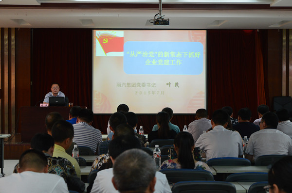 7月16日下午,麗汽集團(tuán)黨委組織開展了一次“在職黨員學(xué)黨章、黨委書記上黨課”活動(dòng)。與會(huì)的120余名在職黨員手捧鮮紅的《中國(guó)共產(chǎn)黨章程》,觀看了電教片《與時(shí)俱進(jìn)話黨章》,認(rèn)真聆聽了集團(tuán)公司黨委書記葉茂親自主講的《“從嚴(yán)治黨”的新常態(tài)下抓好企業(yè)黨建工作》專題黨課。