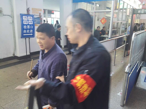 4月29日,五一小長(zhǎng)假的第一天,東站黨員志愿者們熱火朝天的在售票廳粉刷墻壁,他們正用自己的實(shí)際行動(dòng)來(lái)慶祝國(guó)際勞動(dòng)節(jié)。這時(shí),正轉(zhuǎn)身準(zhǔn)備上涂料的保衛(wèi)科副科長(zhǎng)金翔發(fā)現(xiàn)離售票廳不遠(yuǎn)處,一位盲人手拿一根拐杖正艱難的摸索著往售票廳走來(lái),他手里的拐杖左探探右探探,前進(jìn)的步伐非常的緩慢。