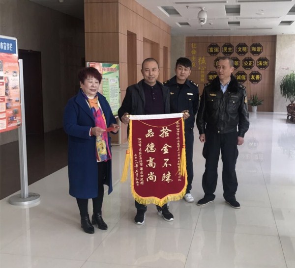 2月20日上午,長運出租車公司浙KT0610駕駛員陳國華,在車內(nèi)撿到乘客遺落的錢包,內(nèi)有現(xiàn)金7000余元以及銀行卡,存折多張。陳師傅立即將失物送到市運管局值班室,并利用錢包中的身份信息通過派出所聯(lián)系上了失主,當(dāng)天下午便將失物歸還于失主,失主潘女士見到失而復(fù)得的錢包非常的開心激動。2月23日下午,失主潘女士送上錦旗,對陳師傅拾金不昧精神再次表示感謝。
