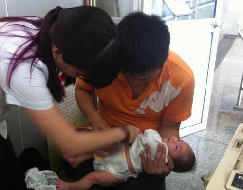 恰在這時,一名年輕的“奶爸”旅客左手拉著一個行李箱,背后背著一個大包,右手還抱著一個尚在襁褓中嚶嚶哭泣的小嬰兒,滿頭大汗的來到服務臺前,小寶寶可能肚子餓了,一直在哭泣,小寶寶的媽媽又沒有隨行,只有爸爸一個人對付小家伙,實在是沒轍了,只得到服務臺求助。